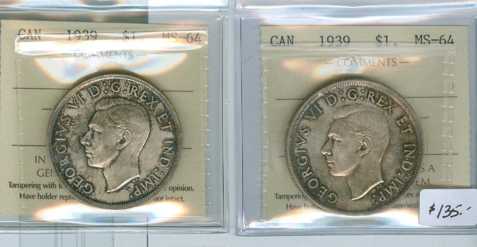 1939 $1 ICCS MS64. Lot of 2 coins both with great eye appeal and gem toning.