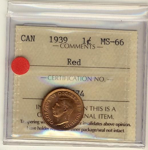 1939 1¢ ICCS MS66 Full Red, A superb GEM example.