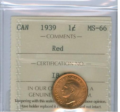 1939 1¢ ICCS MS66RD. 100% red example