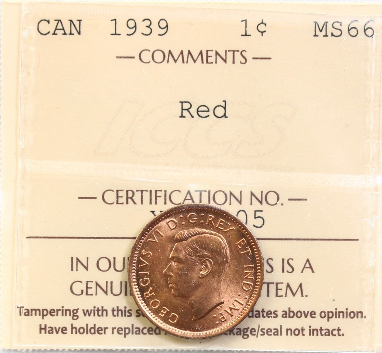 1939 1¢ ICCS Superb Gem Mint State-66 95% Full Red.