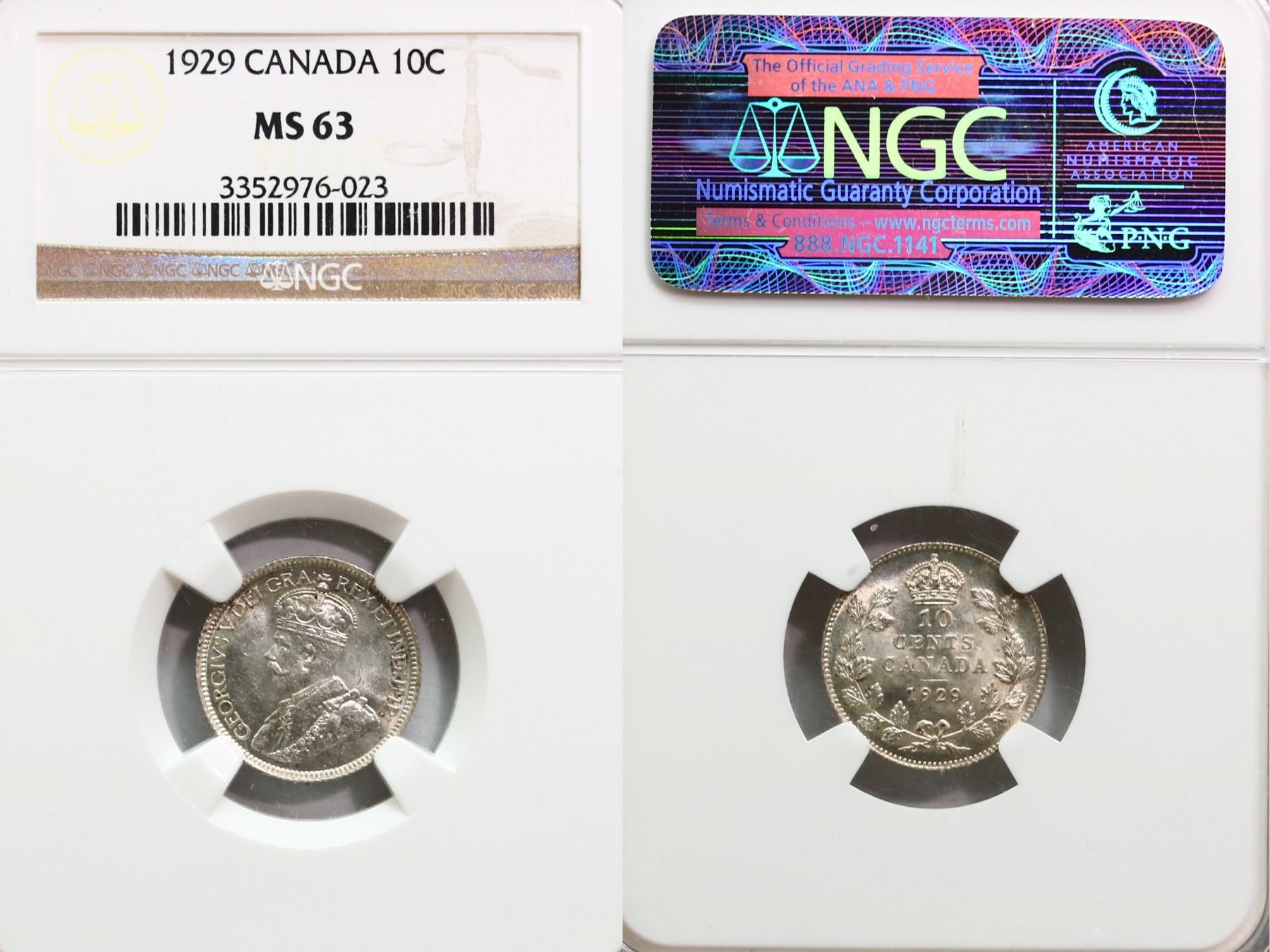 The cataloguer has taken every reasonable measure to ensure that all of the lots in this sale are as described and genuine. All raw coins and banknotes have been graded by the cataloger or the auction house which represent our best professional opinion. To grade coins and banknotes, we use Canadian grading standards, 42 years of experience and good conscience. However, grading is a subjective description in the opinion of the cataloger or the auction house. Among experts there are often differences of opinion on the grading and the eye appeal of a coin. The strike and the state of preservation are often debated. The Canadian Numismatic Company acts as an agent between consignors and buyers. The Canadian Numismatic Company does not guarantee that any coin or banknote cataloged will meet the standards, or the grade, of any third party grading companies. No warranty, whether impressed or implied. Items are as is, no warranty given. We cannot accept responsibility and waive all liability resulting in financial losses, and or incidentals accruing from the sale of any items, nor can we guarantee that items graded by third party services will grade the same if submitted to a different grading service or re-submitted to the same company. Statements by The Canadian Numismatic Company regarding the condition, the eye appeal, the strike and the population of items are for guidance only. All lots offered are sold "AS IS". Title to all lots remains with the auction house until paid for in full by the purchaser. But they are held at the risk of the purchaser once the time of the sale.