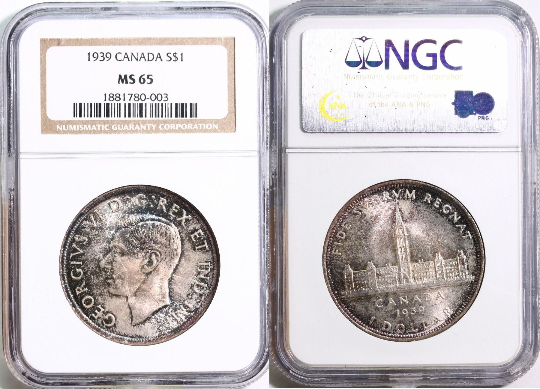 The cataloguer has taken every reasonable measure to ensure that all of the lots in this sale are as described and genuine. All raw coins and banknotes have been graded by the cataloger or the auction house which represent our best professional opinion. To grade coins and banknotes, we use Canadian grading standards, 42 years of experience and good conscience. However, grading is a subjective description in the opinion of the cataloger or the auction house. Among experts there are often differences of opinion on the grading and the eye appeal of a coin. The strike and the state of preservation are often debated. The Canadian Numismatic Company acts as an agent between consignors and buyers. The Canadian Numismatic Company does not guarantee that any coin or banknote cataloged will meet the standards, or the grade, of any third party grading companies. No warranty, whether impressed or implied. Items are as is, no warranty given. We cannot accept responsibility and waive all liability resulting in financial losses, and or incidentals accruing from the sale of any items, nor can we guarantee that items graded by third party services will grade the same if submitted to a different grading service or re-submitted to the same company. Statements by The Canadian Numismatic Company regarding the condition, the eye appeal, the strike and the population of items are for guidance only. All lots offered are sold "AS IS". Title to all lots remains with the auction house until paid for in full by the purchaser. But they are held at the risk of the purchaser once the time of the sale.