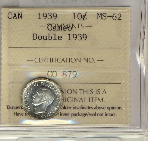 1939 10¢ ICCS MS62 Cameo Double 1939
