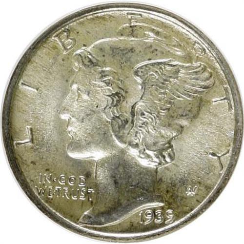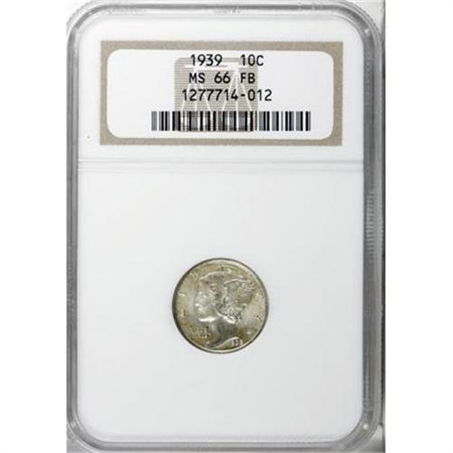 <B>1939 10C MS66 Full Bands NGC.</B></I> NGC Census: (82/35). PCGS Population (248/89). Mintage: 67,749,320. Numismedia Wsl. Price for NGC/PCGS coin in MS66: $200. (#5017)<BR><BR><B>Coin Engraver:</B> Adolph A. Weinman<BR><BR><b>Shipping:</b> Coins & Currency (<a target="_blank" href="http://www.heritageauctions.com/common/shipping.php">view shipping information</a>)