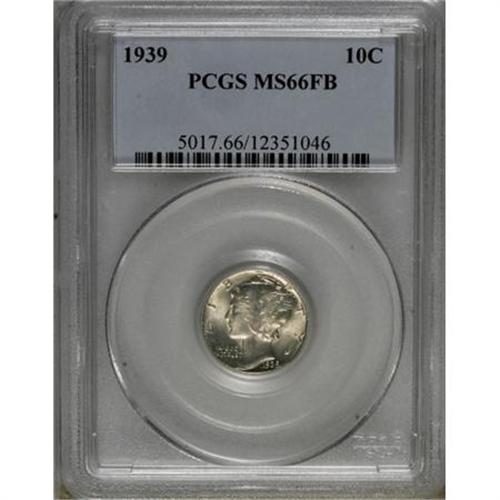 <B>1939 10C MS66 Full Bands PCGS.</B></I> PCGS Population (249/89). NGC Census: (82/35). Mintage: 67,749,320. Numismedia Wsl. Price for NGC/PCGS coin in MS66: $200. (#5017)<BR><BR><B>Coin Engraver:</B> Adolph A. Weinman<BR><BR><b>Shipping:</b> Coins & Currency (<a target="_blank" href="http://www.heritageauctions.com/common/shipping.php">view shipping information</a>)