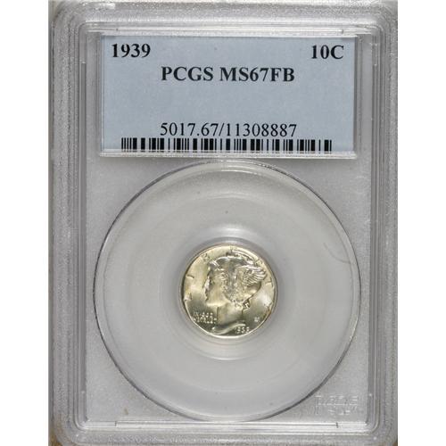 <B>1939 10C MS67 Full Bands PCGS.</B></I> PCGS Population (78/5). NGC Census: (66/0). Mintage: 67,749,320. Numismedia Wsl. Price for NGC/PCGS coin in MS67: $600. (#5017)<BR><BR><b>Shipping:</b> Coins & Currency (<a target="_blank" href="http://www.heritageauctions.com/common/shipping.php">view shipping information</a>)