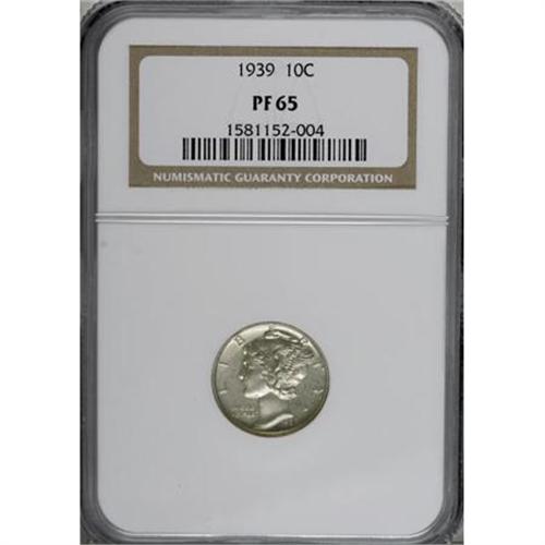 <B>1939 10C PR65 NGC.</B></I> NGC Census: (332/1137). PCGS Population (735/1310). Mintage: 9,321. Numismedia Wsl. Price for NGC/PCGS coin in PR65: $324. (#5074)<BR><BR><B>Coin Engraver:</B> Adolph A. Weinman<BR><BR><b>Shipping:</b> Coins & Currency (<a target="_blank" href="http://www.heritageauctions.com/common/shipping.php">view shipping information</a>)