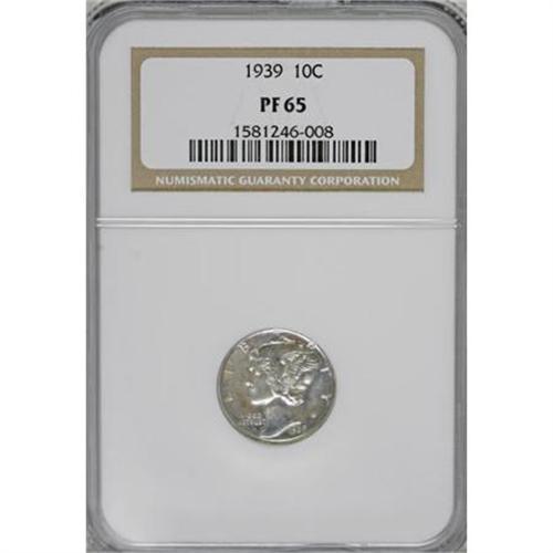 <B>1939 10C PR65 NGC.</B></I> NGC Census: (342/1185). PCGS Population (735/1307). Mintage: 9,321. Numismedia Wsl. Price for NGC/PCGS coin in PR65: $324. (#5074)<BR><BR><B>Coin Engraver:</B> Adolph A. Weinman<BR><BR><b>Shipping:</b> Coins & Currency (<a target="_blank" href="http://www.heritageauctions.com/common/shipping.php">view shipping information</a>)