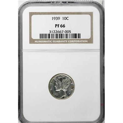 <B>1939 10C PR66 NGC.</B></I> . NGC Census: (729/467). PCGS Population (849/465). Mintage: 9,321. Numismedia Wsl. Price for NGC/PCGS coin in PR66: $350. (#5074)<BR><BR><B>Coin Engraver:</B> Adolph A. Weinman<BR><BR><b>Shipping:</b> Coins & Currency (<a target="_blank" href="http://www.heritageauctions.com/common/shipping.php">view shipping information</a>)