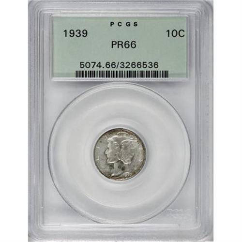 <B>1939 10C PR66 PCGS.</B></I> PCGS Population (848/461). NGC Census: (716/421). Mintage: 9,321. Numismedia Wsl. Price for NGC/PCGS coin in PR66: $360. (#5074)<BR><BR><B>Coin Engraver:</B> Adolph A. Weinman<BR><BR><b>Shipping:</b> Coins & Currency (<a target="_blank" href="http://www.heritageauctions.com/common/shipping.php">view shipping information</a>)