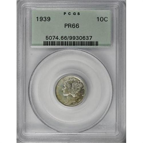<B>1939 10C PR66 PCGS.</B></I> PCGS Population (848/461). NGC Census: (716/421). Mintage: 9,321. Numismedia Wsl. Price for NGC/PCGS coin in PR66: $360. (#5074)<BR><BR><B>Coin Engraver:</B> Adolph A. Weinman<BR><BR><b>Shipping:</b> Coins & Currency (<a target="_blank" href="http://www.heritageauctions.com/common/shipping.php">view shipping information</a>)