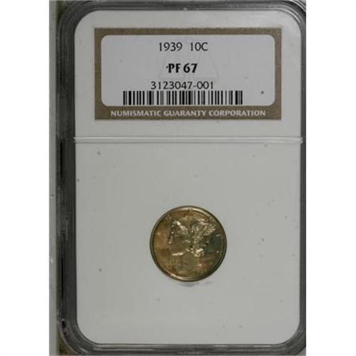 <B>1939 10C PR67 NGC.</B></I> NGC Census: (412/57). PCGS Population (436/30). Mintage: 9,321. Numismedia Wsl. Price for NGC/PCGS coin in PR67: $535. (#5074)<BR><BR><B>Coin Engraver:</B> Adolph A. Weinman<BR><BR><b>Shipping:</b> Coins & Currency (<a target="_blank" href="http://www.heritageauctions.com/common/shipping.php">view shipping information</a>)