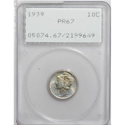 <B>1939<10C> PR67 PCGS.</B></I> The milky green patina that covers the moderately reflective mirrors has splashes of russet on and near the obverse devices. Housed in a first-generation holder.