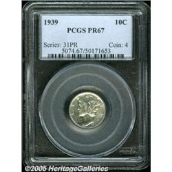 <B>1939 10C PR67 PCGS.</B></I> This is a Superb Gem Proof with brilliant mirrored surfaces. Both sides, but especially the reverse, have splashes of faint blue and iridescent color. This is an ideal example for the advanced type collector.