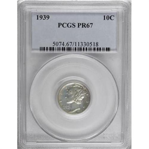 <B>1939 10C PR67 PCGS.</B></I> PCGS Population (431/30). NGC Census: (368/52). Mintage: 9,321. Numismedia Wsl. Price for NGC/PCGS coin in PR67: $600. (#5074)<BR><BR><B>Coin Engraver:</B> Adolph A. Weinman<BR><BR><b>Shipping:</b> Coins & Currency (<a target="_blank" href="http://www.heritageauctions.com/common/shipping.php">view shipping information</a>)