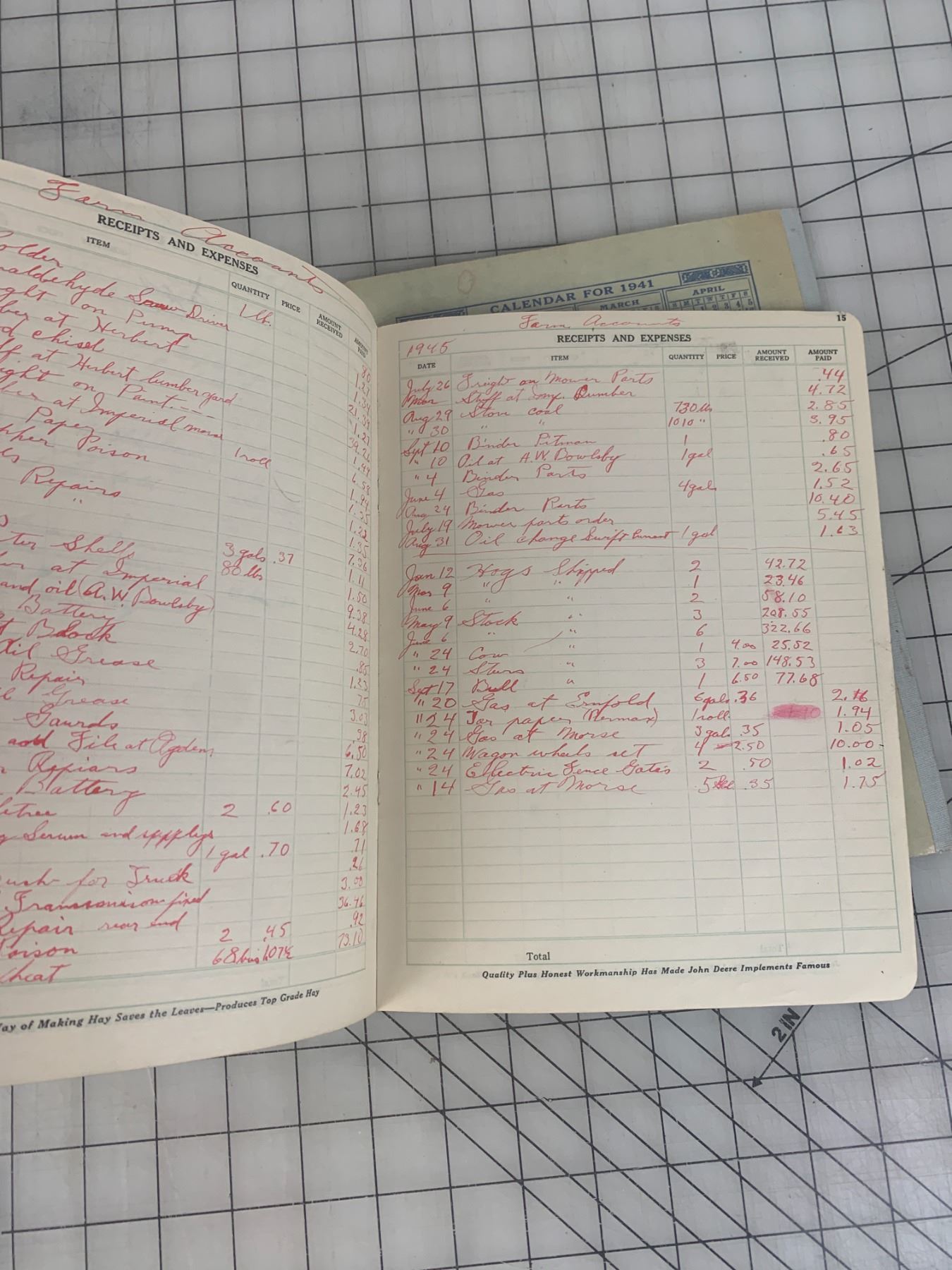 1939 & 1941 JOHN DEERE FARMERS ACCOUNT BOOKS