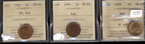 1939, 1946, 1954 SF all three coins are ICCS graded MS64 red.