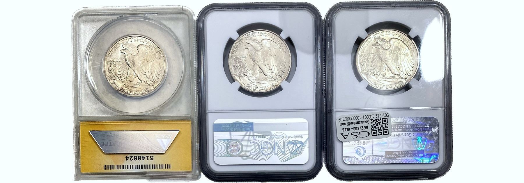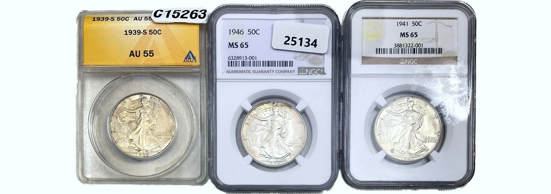 1939-1946 GEM UNC Walking Lib Half Dollar[3 Coins] ANACS/NGC AU/MS55-65