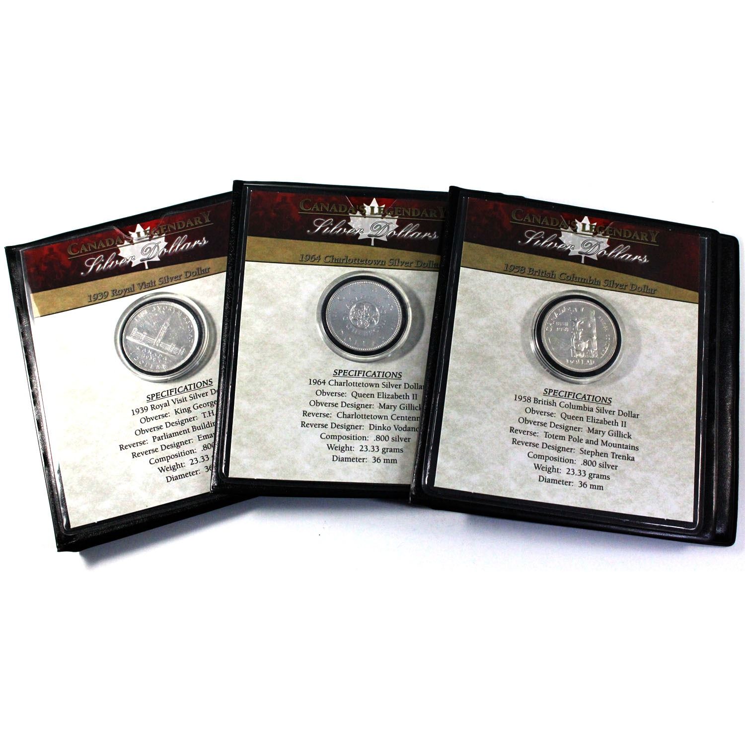 1939,1958 & 1964 First Commemorative Mint coin Sets in Presentation Folders. 3pcs