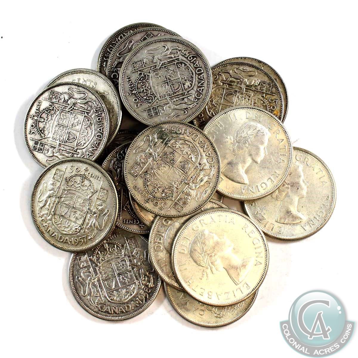1939-1965 Canada Silver 50-cents. You will receive 19 different dates. 19pcs