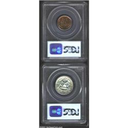 1939 1C Cent PR65 Red PCGS, flaming red and obviously just popped from an original proof set; and a 1939 Quarter PR66 PCGS, brilliant throughout with deeply mirrored fields, a scarcer and undervalued issue. 2 coins Important notice: We expect to be auctioning lots at the rate of 200-250 per hour. Sometimes eBay Premier live bid software cannot keep up with that pace, so we strongly recommend that you place a realistic proxy bid now as insurance to avoid disappointment. Also please note that all Heritage/CAA lots purchased through eBay Premier carry a 20% Buyer's Premium. Please make sure you read the Terms and Conditions.