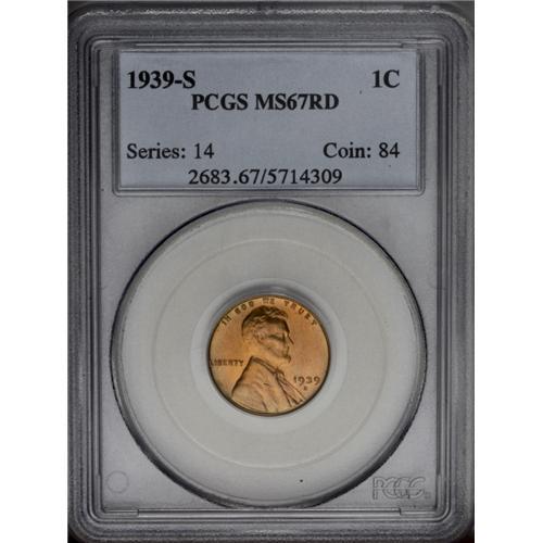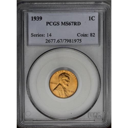 1939 1C MS67 Red PCGS, a magnificent and bright aprico