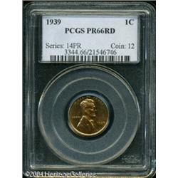 1939 1C PR66 Red PCGS. A radiant orange Gem that i <B>1939 1C PR66 Red PCGS.</B></I> A radiant orange Gem that is perhaps separated by a miniscule carbon speck or two, on the obverse, from an even higher grade. <BR><BR><B>Important notice:</B> Heritage usually auctions material at the rate of 200-250 lots per hour. On some occasions eBay Live bid software or the Internet may not be able to keep up with the pace of the auction. We recommend placing a realistic absentee bid now as insurance to avoid disappointment. Occasionally the auctioneer may eliminate or reject an eBay Live bid, and the auctioneer may also reopen a lot after the close of the eBay live bidding (usually because we missed an audience bid), and may reject your bid even if it shows you as the winning bidder. By bidding via eBay Live, you agree that Heritage may award the lot to another bidder at its sole discretion under the circumstances described above or any other reasonable circumstances. Since eBay bids are not shown to us until we open the lot on the floor, we treat those bids just like floor bids. In most cases the floor responds before the eBay bid is presented to us, due to Internet lag time, so for consistency we have made it a policy that floor bids are always considered first over tie eBay live bids. Also please note that all Heritage lots purchased through eBay Live carry a 20% Buyer's Premium. Please make sure you read the Terms and Conditions before you bid. This lot is being auctioned in conjunction with a live floor auction by Heritage Galleries & Auctioneers. All final auction and invoice information will be supplied by Heritage Galleries & Auctioneers, and all other information should be considered preliminary. Lot:5420