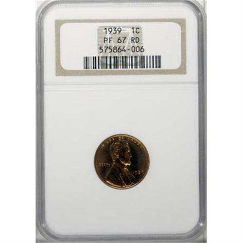 <B>1939 1C PR67 Red NGC.</B></I> A charming apricot-red Superb Gem that has the needle-sharp strike expected of a proof. Flawless aside from microscopic peripheral flecks. Census: 14 in 67 Red, 0 finer (1/08).<BR><BR><B>Coin Engraver:</B> Victor D. Brenner<BR><BR><b>Shipping:</b> Coins & Currency (<a target="_blank" href="http://www.heritageauctions.com/common/shipping.php">view shipping information</a>)