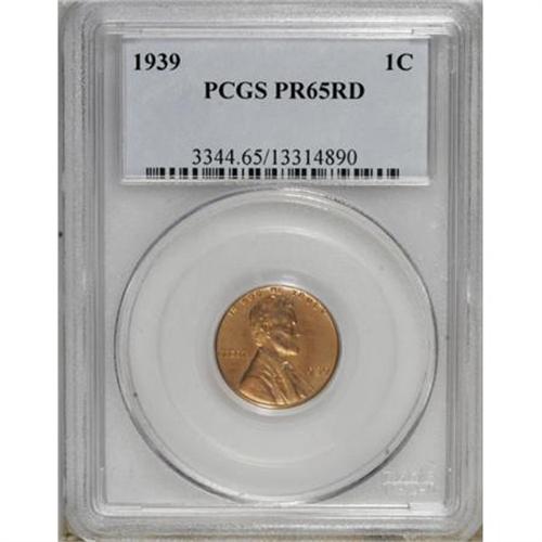 <B>1939 1C PR65 Red PCGS.</B></I> PCGS Population (577/276). NGC Census: (239/130). Mintage: 13,520. Numismedia Wsl. Price for NGC/PCGS coin in PR65: $150. (#3344)<BR><BR><B>Coin Engraver:</B> Victor D. Brenner<BR><BR><b>Shipping:</b> Coins & Currency (<a target="_blank" href="http://www.heritageauctions.com/common/shipping.php">view shipping information</a>)