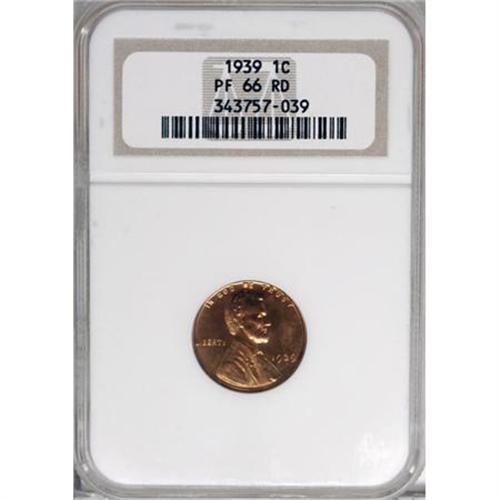 <B>1939 1C PR66 Red NGC.</B></I> NGC Census: (116/14). PCGS Population (249/27). Mintage: 13,520. Numismedia Wsl. Price for NGC/PCGS coin in PR66: $410. (#3344)<BR><BR><B>Coin Engraver:</B> Victor D. Brenner<BR><BR><b>Shipping:</b> Coins & Currency (<a target="_blank" href="http://www.heritageauctions.com/common/shipping.php">view shipping information</a>)