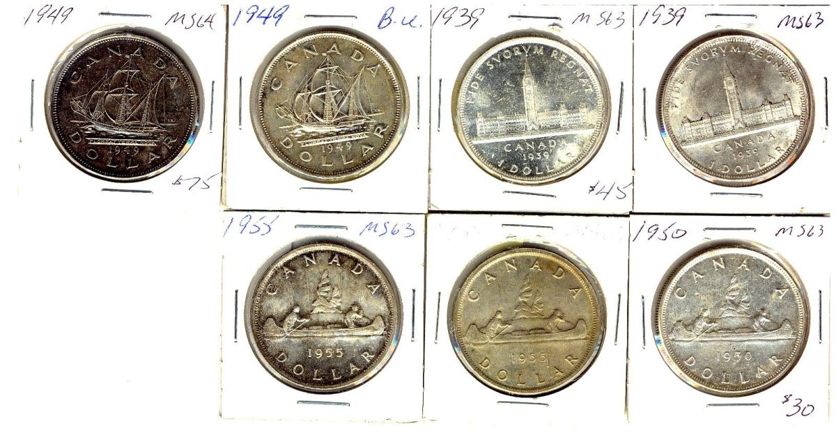 1939(2), 1949(2), 1950 & 1955(2). Lot of 7 $1 pcs all MS60 or better.