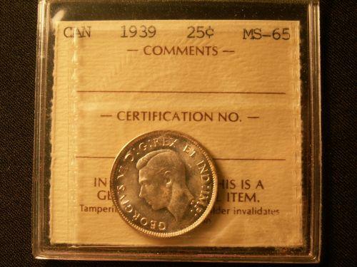 1939 25¢ ICCS MS65. Fully struck with light toning. Full underlying luster. A true Gem.