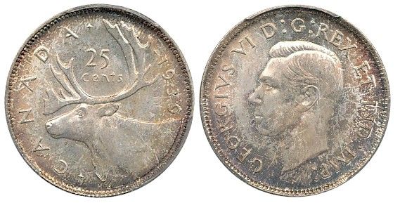 1939 25¢ PCGS MS66. Pristine colours and eye appeal.