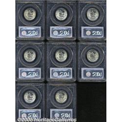 <B>1939 25C MS66 PCGS.</B></I> Eight coins. All are sharply struck, with full bright luster, pale golden toning, and well preserved surfaces that are essentially free of marks. An exceptional group of Washington quarters. 8 Coins
