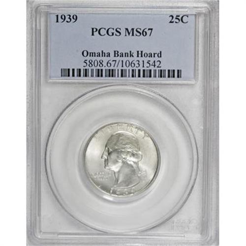 <B>1939 25C MS67 PCGS.</B></I> Ex: Omaha Bank Hoard. PCGS Population (196/2). NGC Census: (226/3). Mintage: 33,548,796. Numismedia Wsl. Price for NGC/PCGS coin in MS67: $260. (#5808)<BR><BR><B>Coin Engraver:</B> John Flanagan<BR><BR><b>Shipping:</b> Coins & Currency (<a target="_blank" href="http://www.heritageauctions.com/common/shipping.php">view shipping information</a>)