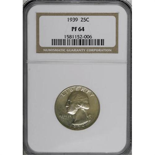 <B>1939 25C PR64 NGC.</B></I> NGC Census: (138/777). PCGS Population (340/1196). Mintage: 8,795. Numismedia Wsl. Price for NGC/PCGS coin in PR64: $185. (#5978)<BR><BR><B>Coin Engraver:</B> John Flanagan<BR><BR><b>Shipping:</b> Coins & Currency (<a target="_blank" href="http://www.heritageauctions.com/common/shipping.php">view shipping information</a>)