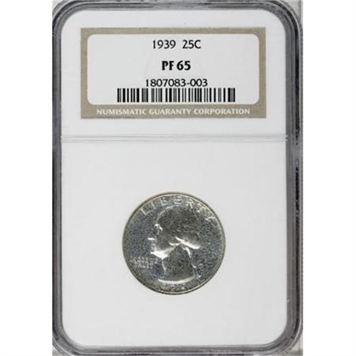 <B>1939 25C PR65 NGC.</B></I> NGC Census: (295/526). PCGS Population (577/632). Mintage: 8,795. Numismedia Wsl. Price for NGC/PCGS coin in PR65: $230. (#5978)<BR><BR><B>Coin Engraver:</B> John Flanagan<BR><BR><b>Shipping:</b> Coins & Currency (<a target="_blank" href="http://www.heritageauctions.com/common/shipping.php">view shipping information</a>)