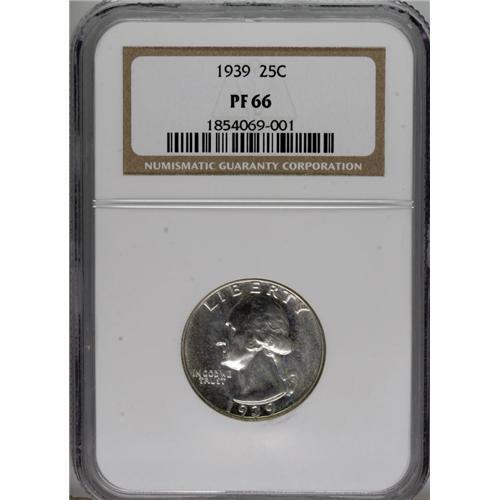 <B>1939 25C PR66 NGC.</B></I> NGC Census: (340/141). PCGS Population (496/123). Mintage: 8,795. Numismedia Wsl. Price: $280. (#5978)<BR><BR><b>Shipping:</b> Coins & Currency (<a target="_blank" href="http://www.heritageauctions.com/common/shipping.php">view shipping information</a>)