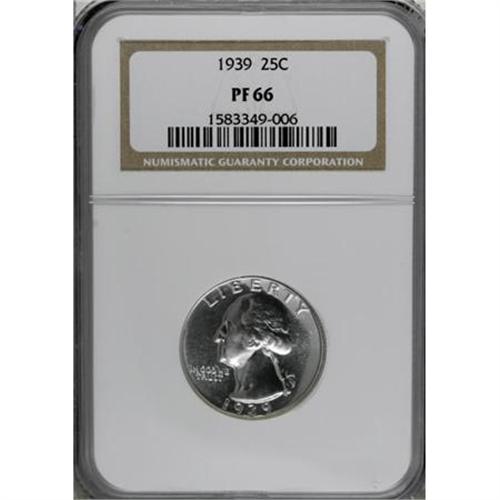 <B>1939 25C PR66 NGC.</B></I> NGC Census: (352/145). PCGS Population (499/121). Mintage: 8,795. Numismedia Wsl. Price for NGC/PCGS coin in PR66: $270. (#5978)<BR><BR><B>Coin Engraver:</B> John Flanagan<BR><BR><b>Shipping:</b> Coins & Currency (<a target="_blank" href="http://www.heritageauctions.com/common/shipping.php">view shipping information</a>)