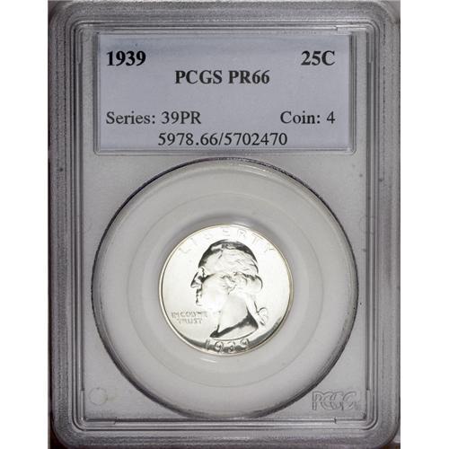 <B>1939<25C> PR66 PCGS.</B></I> A razor-sharp and impressively preserved Gem that features a fully brilliant appearance overall. A perfect type coin selection.