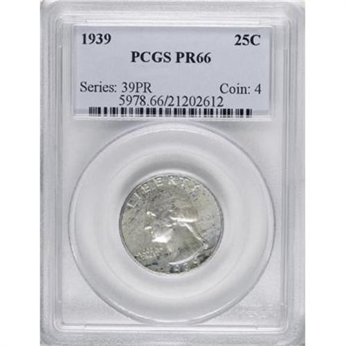 <B>1939 25C PR66 PCGS.</B></I> . PCGS Population (503/124). NGC Census: (359/165). Mintage: 8,795. Numismedia Wsl. Price for NGC/PCGS coin in PR66: $270. (#5978)<BR><BR><B>Coin Engraver:</B> John Flanagan<BR><BR><b>Shipping:</b> Coins & Currency (<a target="_blank" href="http://www.heritageauctions.com/common/shipping.php">view shipping information</a>)