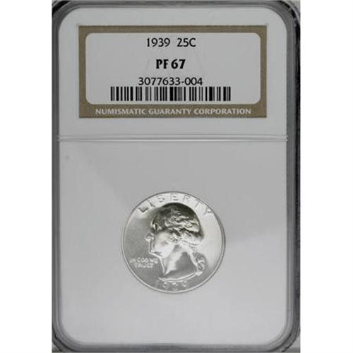 <B>1939 25C PR67 NGC.</B></I> NGC Census: (132/14). PCGS Population (120/2). Mintage: 8,795. Numismedia Wsl. Price for NGC/PCGS coin in PR67: $530. (#5978)<BR><BR><B>Coin Engraver:</B> John Flanagan<BR><BR><b>Shipping:</b> Coins & Currency (<a target="_blank" href="http://www.heritageauctions.com/common/shipping.php">view shipping information</a>)