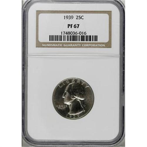 <B>1939 25C PR67 NGC.</B></I> NGC Census: (151/14). PCGS Population (122/2). Mintage: 8,795. Numismedia Wsl. Price for NGC/PCGS coin in PR67: $525. (#5978)<BR><BR><B>Coin Engraver:</B> John Flanagan<BR><BR><b>Shipping:</b> Coins & Currency (<a target="_blank" href="http://www.heritageauctions.com/common/shipping.php">view shipping information</a>)