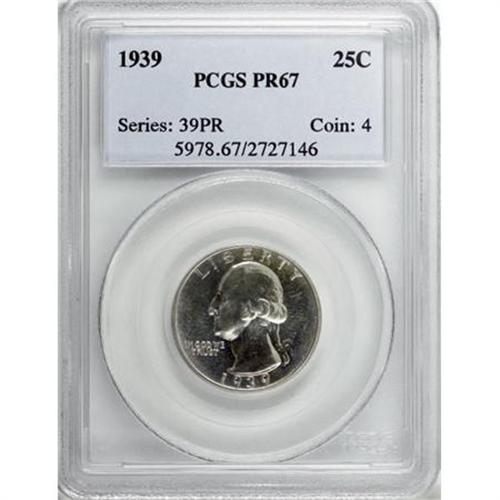 <B>1939 25C PR67 PCGS.</B></I> PCGS Population (120/2). NGC Census: (132/14). Mintage: 8,795. Numismedia Wsl. Price for NGC/PCGS coin in PR67: $530. (#5978)<BR><BR><B>Coin Engraver:</B> John Flanagan<BR><BR><b>Shipping:</b> Coins & Currency (<a target="_blank" href="http://www.heritageauctions.com/common/shipping.php">view shipping information</a>)