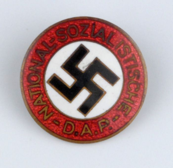 NSDAP, Nazi Party enamel pin back member's badge. With Reichszeugmeistere and other marks to reverse.