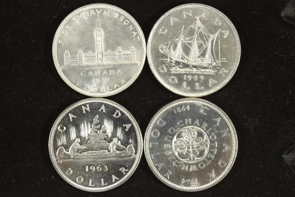 1939,49,63 & 64 (PF LIKE) CANADIAN SILVER DOLLARS