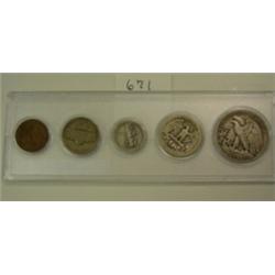 1939 5 Coin Silver Year Set. Vintage US coins.