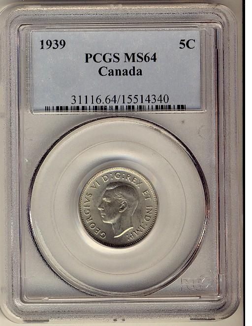 1939 5¢ PCGS MS64, lustrous