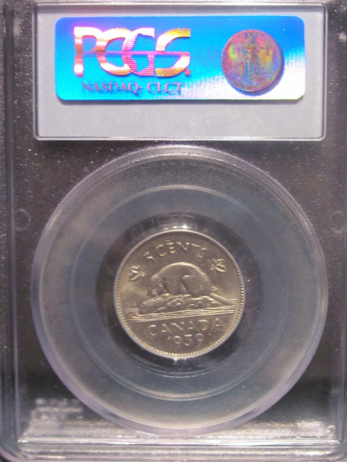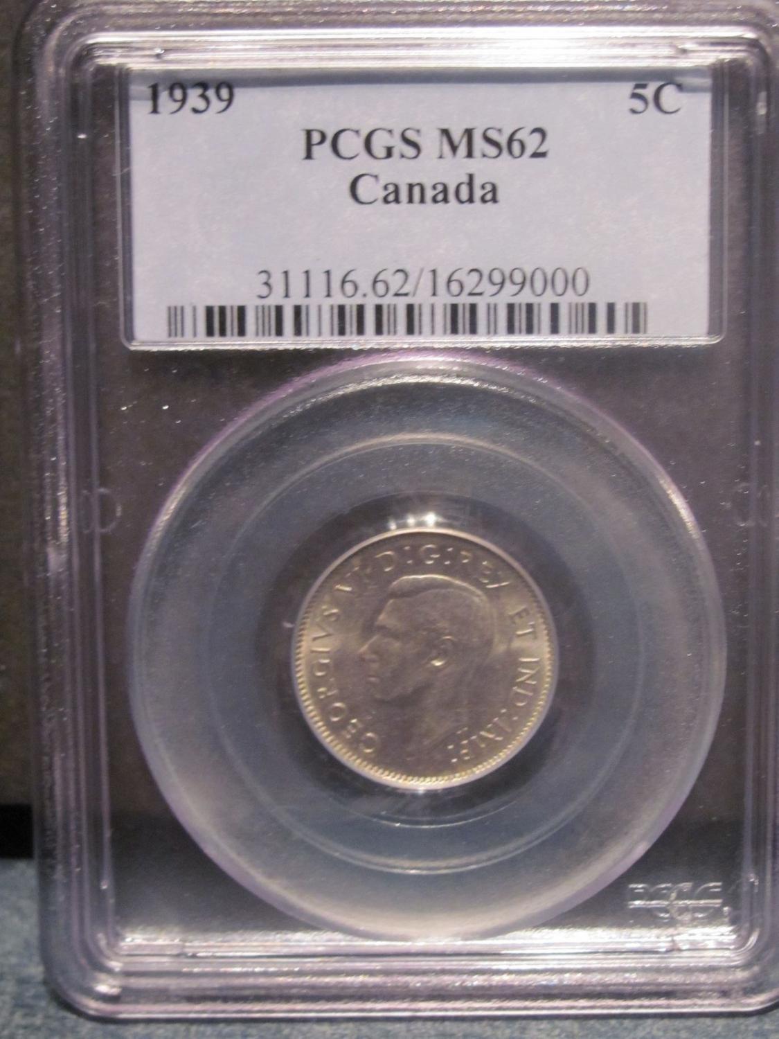 Nice example of George VII coin, 1939 5 cents graded by PCGS MS62