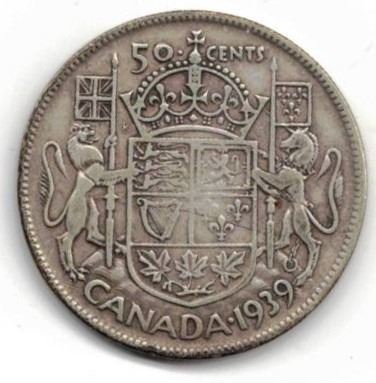 1939 50 Cent Coin Canadian